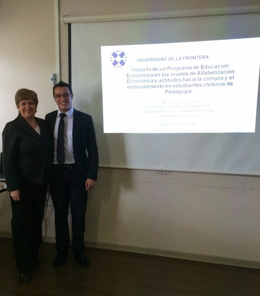 Ítalo Javier Alí Diez, el día 15 de diciembre del año 2014, realizó la presentación de su tesis para optar al Grado de Magíster en Psicología en la Universidad de La Frontera, la cual se denominó “Impacto de un Programa de Educación Económica en los niveles de Alfabetización Económica y actitudes hacia la compra y el endeudamiento en estudiantes chilenos de Pedagogía”, investigación guiada por Doctora Marianela Denegri y financiada por el Fondo de Ciencia y Tecnología (FONDECYT) N°1110711.