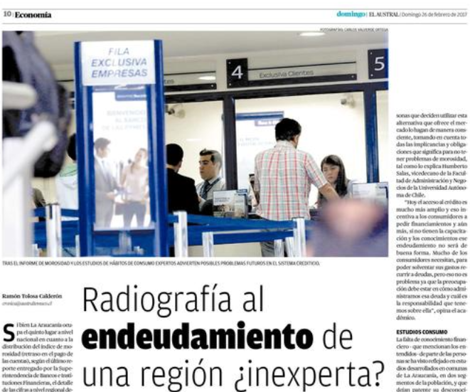 Compartimos el reportaje publicado por el Diario Austral el día domingo 26 de febrero, en la sección Economía, titulado: Radiografía al endeudamiento de una región ¿inexperta?