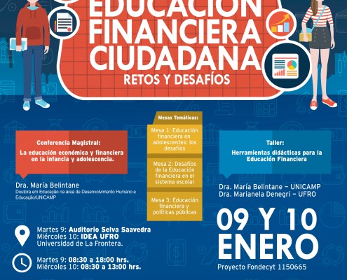 En el mes de enero se realizará el Seminario/Taller: Jóvenes y Educación Financiera Ciudadana, retos y desafíos, el cual busca socializar los resultados del proyecto Fondecyt 1150665 sobre Alfabetización Económica y Financiera, y así poner en la palestra un tema tan relevante para nuestra comunidad.